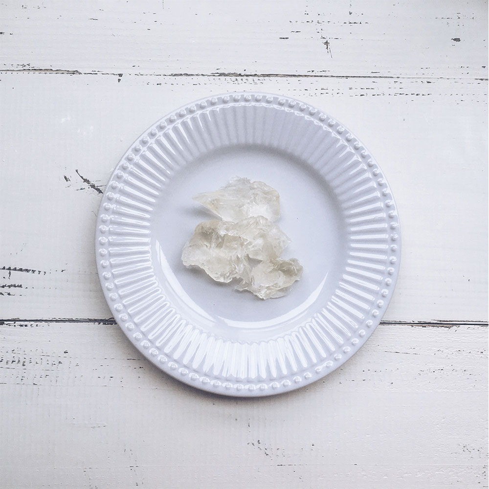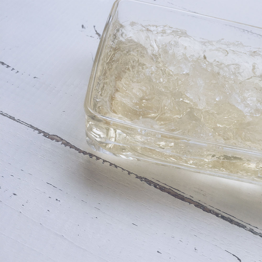 | 9.透明で弾力性のあるゴムのような、液体石けんの素が出来上がります。 |