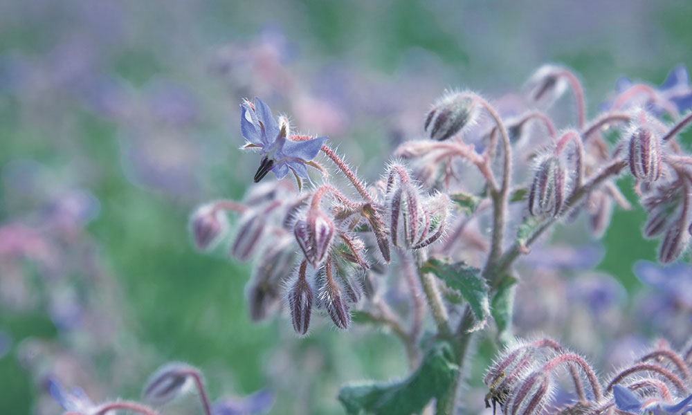 南ヨーロッパ原産の一年草です。古くから熱を下げて血液を浄化する薬草として使用されていました。種子からはボリジオイル(ボラージオイル)が抽出され、キャリアオイルとして広く利用されています。学名の由来はボリジの花言葉をご覧ください。
