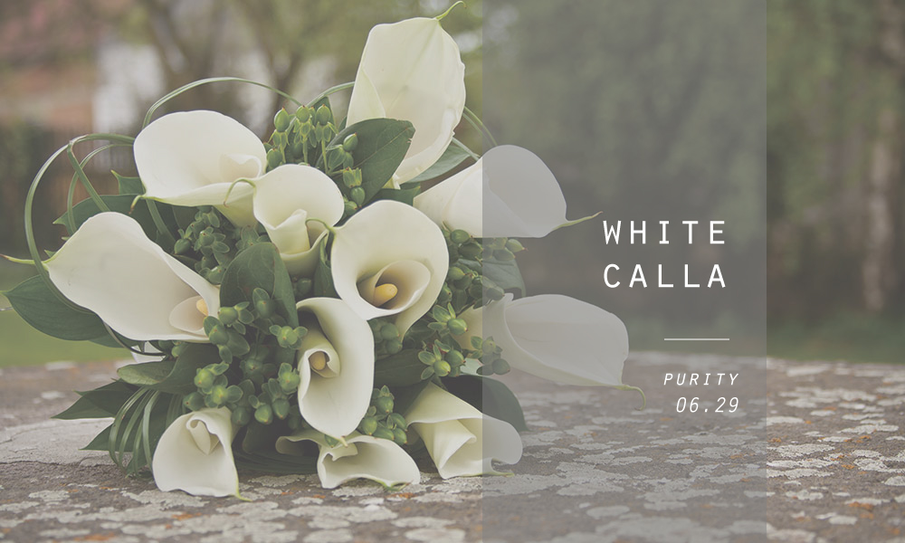 カラーは、サトイモ科オランダカイウ属の植物の総称です。同じサトイモ科に学名Calla(ヒメカイウ属)がありますが、一般的にカラーという花を指す場合は、オランダカイウ属の花を言います。Callaの語源はギリシア語の「美」を表す言葉です。日本では里芋に似ていることから「海芋(かいう)」とも呼ばれます。また、白い色を百合に例えて、「ナイルの百合」、「エジプトの百合」とも呼ばれます。白いカラーの花言葉は「純潔さ」です。