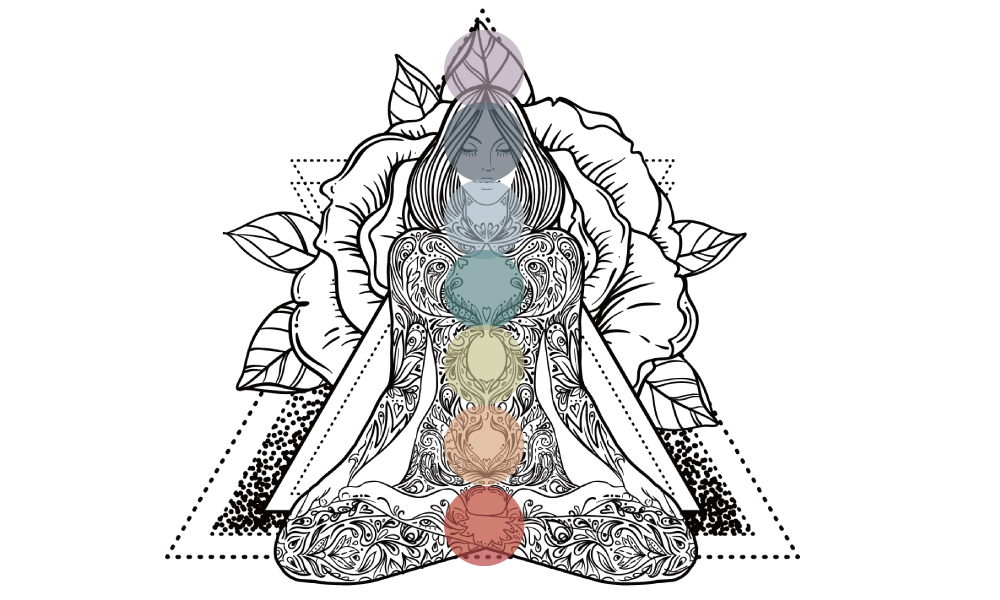 チャクラは「車輪」や「渦」などと訳されます。チャクラは常に回転していることから、「回転」の意味も含まれています。頭から胴体へと縦に配列された車輪のようなエネルギーとして描写されます。チャクラは高次元のエネルギーを取り入れて、体内で利用可能なかたちに変換する場所です。別の言い方をすると、思いや感情を身体とつなげるツボになります。