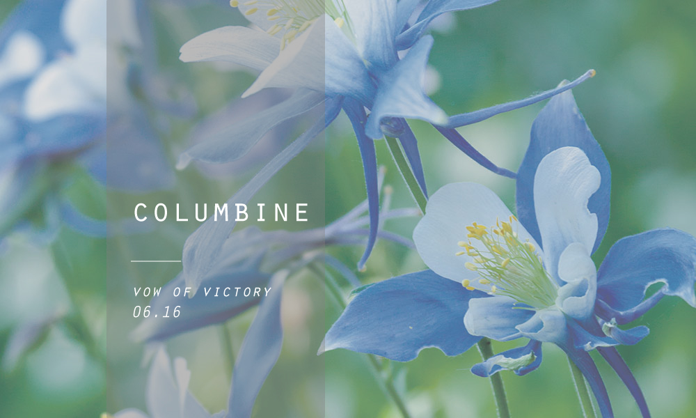 オダマキは、キンポウゲ科オダマキ属に属する植物の総称です。学名のAquilegiaは、角のように突き出た蜜腺の形態がAquila(ワシ)の爪に似ていることから来ています。英名のColumbineは、ラテン語で鳩の意味のcolumbaが由来です。オダマキの下向きになった花の形が、鳩が寄り添ったように見えることから来ています。鳩は聖霊を意味する縁起のいい動物です。一方、オダマキが失恋や浮気と結びつけられることもありました。それは15世紀ごろのイギリスでは、浮気をした夫の額には角が生えるという俗説があり、オダマキの花弁が角に似ているとみなされたことが理由です。花言葉の一般は「勝利の誓い」です。