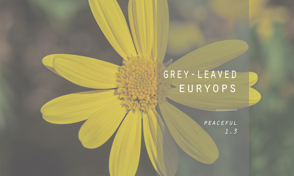 ユリオプスデイジーは、キク科ユリオプス属の植物です。学名のEuryopsはギリシア語で「大きな目を持つ」という意味です。花の姿を例えた名前です。綺麗な黄色の花と、表面に細かい毛があるために銀白色に見える葉を持ちます。花言葉は「円満」です。