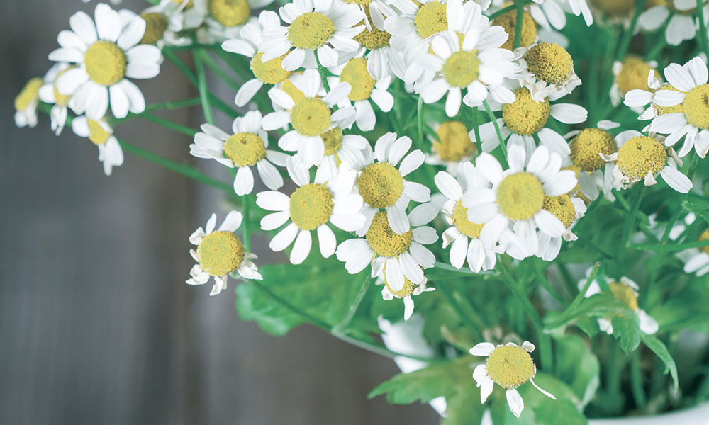 カモミールに似た可愛いを咲かせます。偏頭痛や吐き気を押さえるハーブとして有名です。