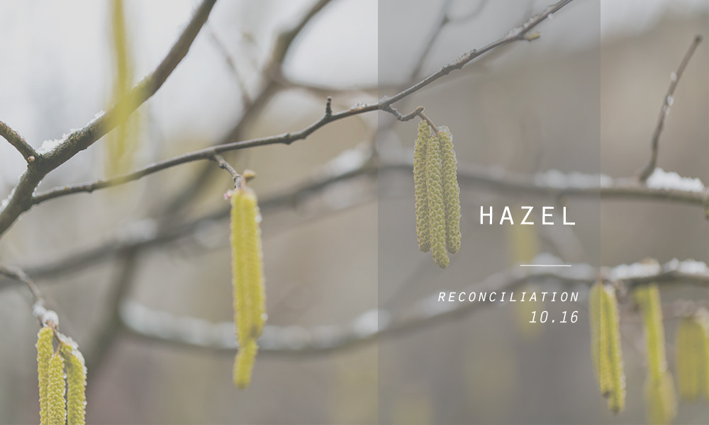 ヘーゼルは、カバノキ科ハシバミ属の植物です。特にCorylus avellanaは、セイヨウハシバミとも呼ばれ、ヘーゼルナッツが採れる種類です。学名のCorylusは、ラテン語で「ハシバミ」を表します。ローマ人は、結婚式の前夜にヘーゼルの枝を燃やし、平和な結婚生活が送れるように祈りました。また、ケルト人はこの木を豊穣と結びつけました。また、巡礼の証や悪天候からのお守りとして利用されたりなど、古くから様々な迷信と結びつけられてきました。花言葉は「和解」です。